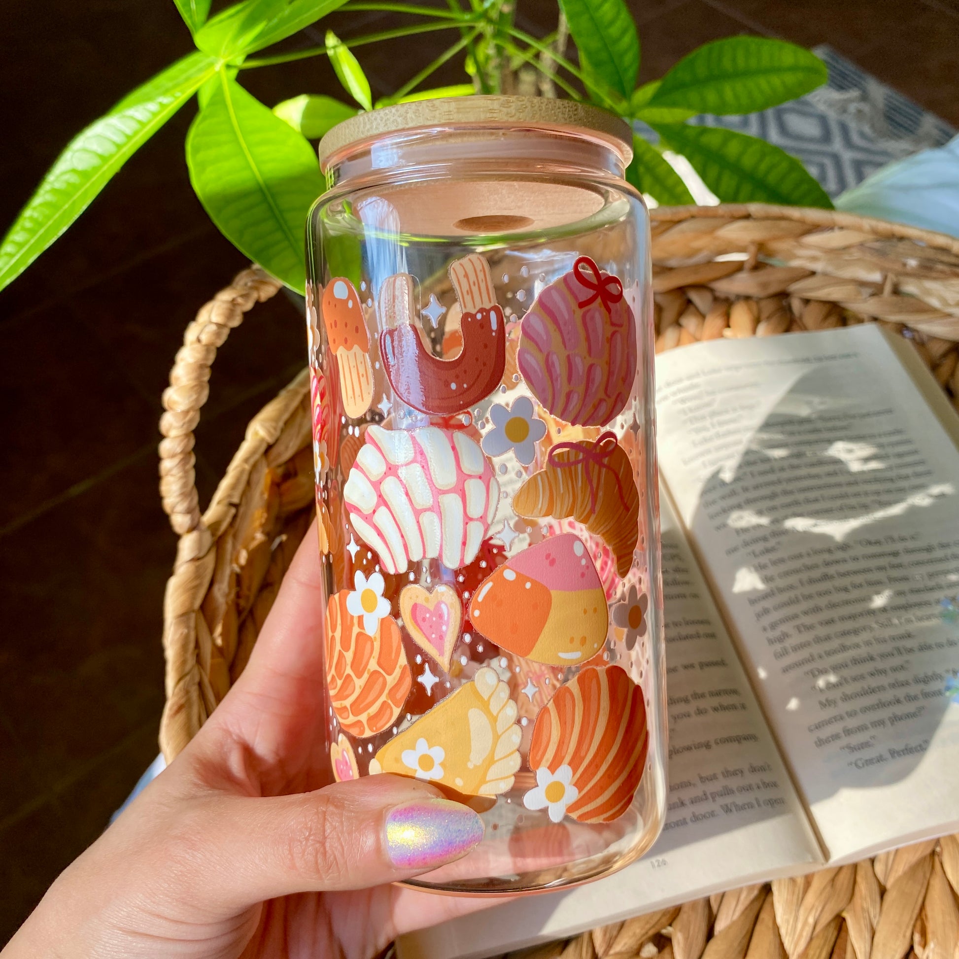 Conchas Bread Glass Cup | Handmade | Unique Gift | Iced Coffee | Matcha | Simple