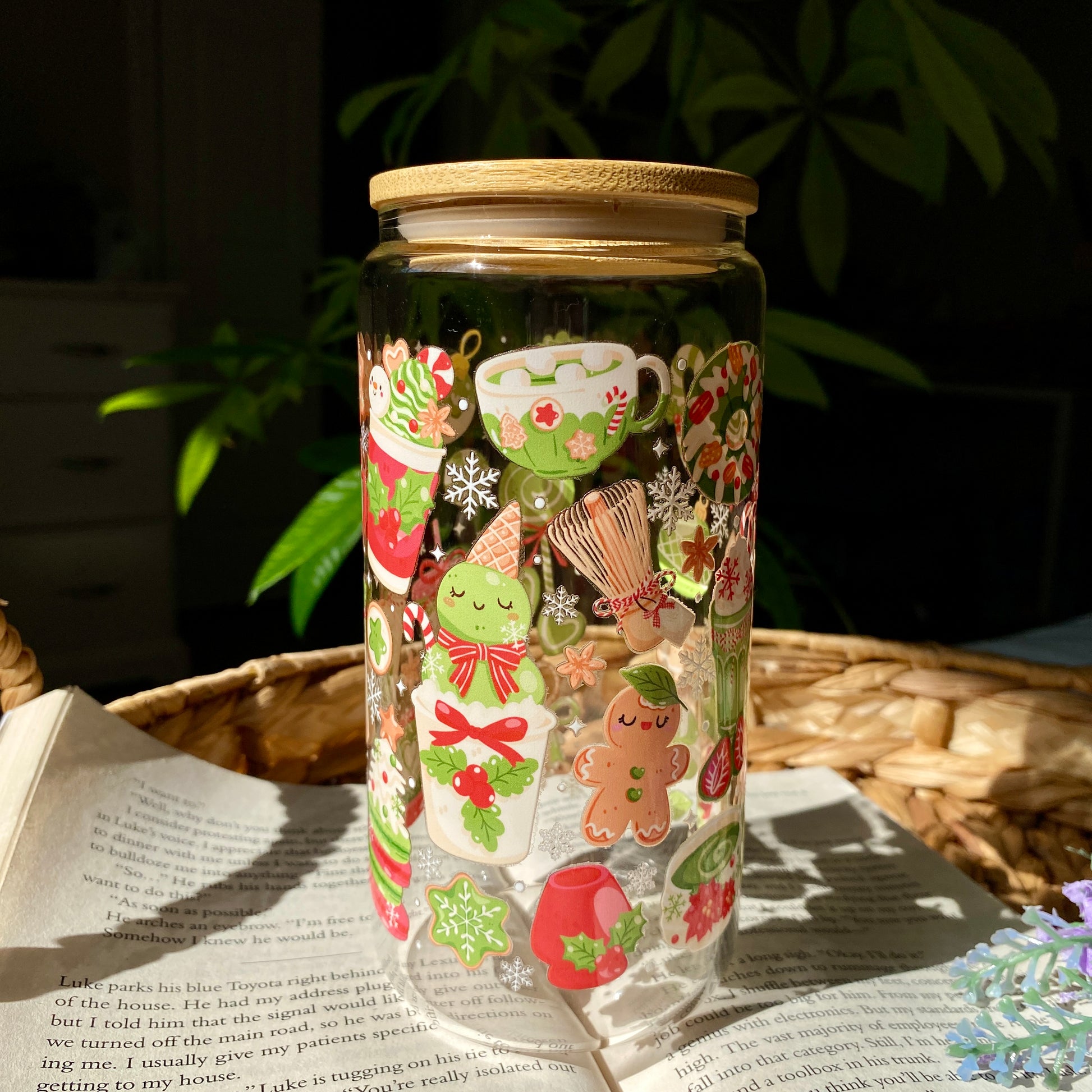 Matcha Green Holiday Christmas Glass Cup | Handmade | Unique Gift | Iced Coffee | Matcha | Simple