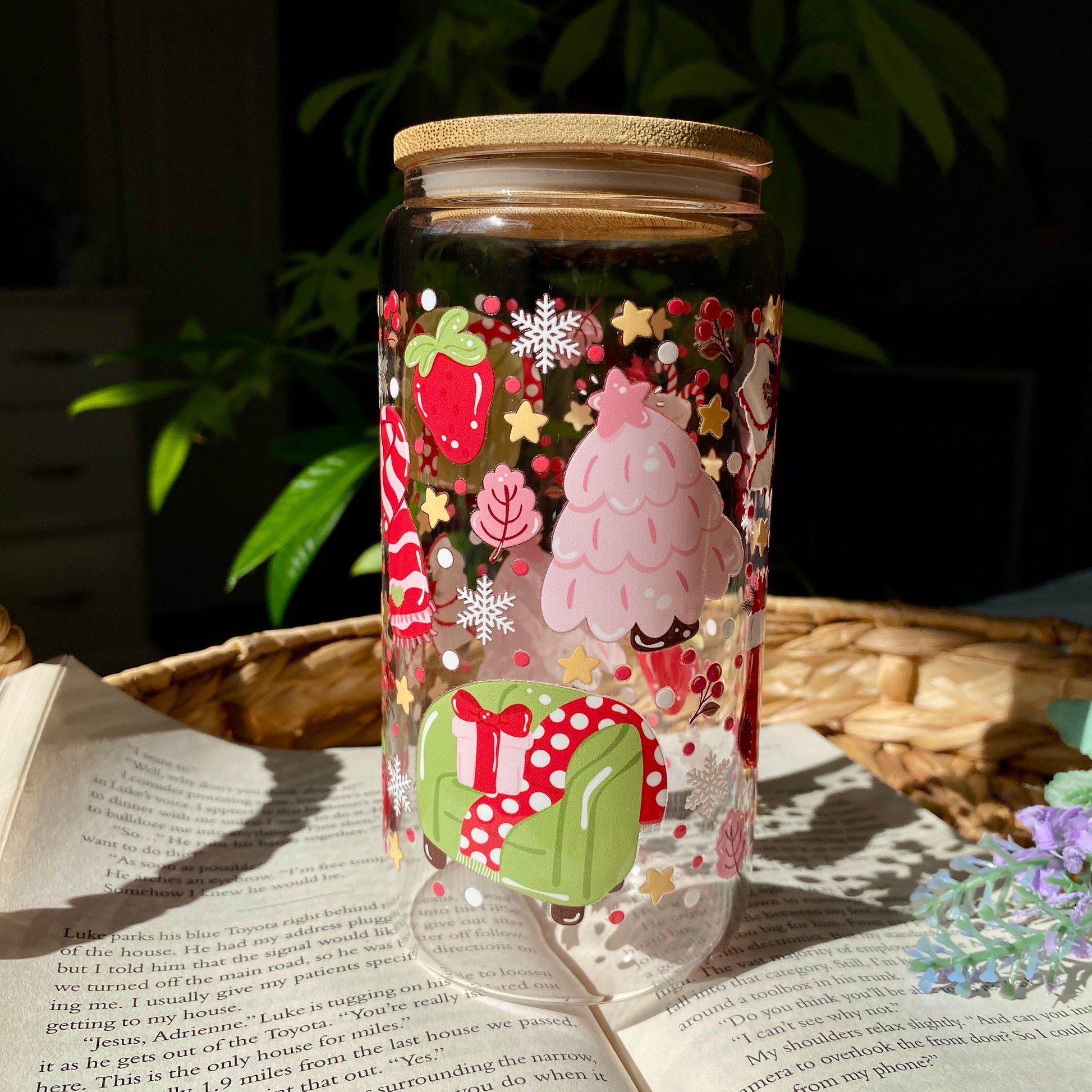 Red Holiday Christmas Glass Cup | Handmade | Unique Gift | Iced Coffee | Matcha | Simple